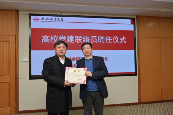 余其俊首先对闵铁军同志多年来的辛勤付出,以及对学校发展给予的支持帮助表示衷心的感谢,对丁辉同志担任我校党建联络员表示热烈欢迎。余其俊介绍了学校的整体情况,他指出,学校党委始终坚定正确办学方向,全面贯彻党的教育方针,以习近平新时代中国特色社会主义思想和党的二十大精神为指导,认真贯彻落实党中央、教育部党组和安徽省委的决策部署,把全面从严治党作为筑魂强基工程,切实加强党对学校工作的全面领导,持续加强基层党组织标准化、规范化建设,形成了一系列特色做法和经验,培育了一大批党支部工作先进典型,多家中央主流媒体先后对我校党建工作进行报道。