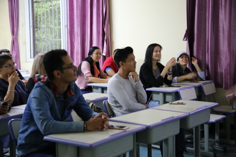 下午14点,活动在《中秋那些事儿》文化讲座中拉开了序幕。中文老师为外国留学生讲解了中秋节的来历、典故和风俗习惯等轶事,各国学生也共同朗读了关于中秋节的古诗,教室里欢声笑语、其乐融融。