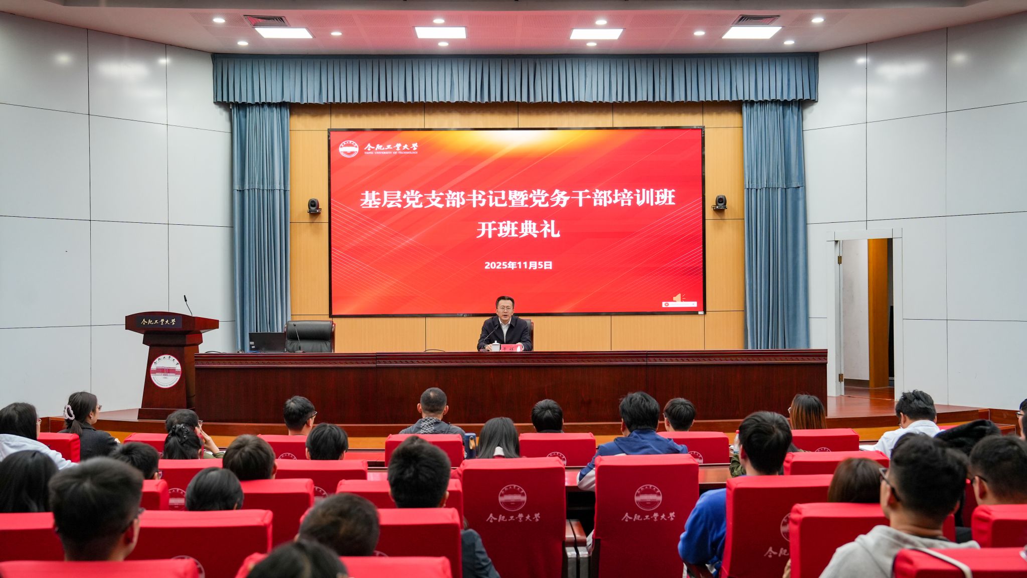 11月5日下午,学校2025年基层党支部书记暨党务干部专题培训班开班典礼在屯溪路校区、翡翠湖校区、宣城校区同步举行。校党委书记于祥成出席开班式并讲话。