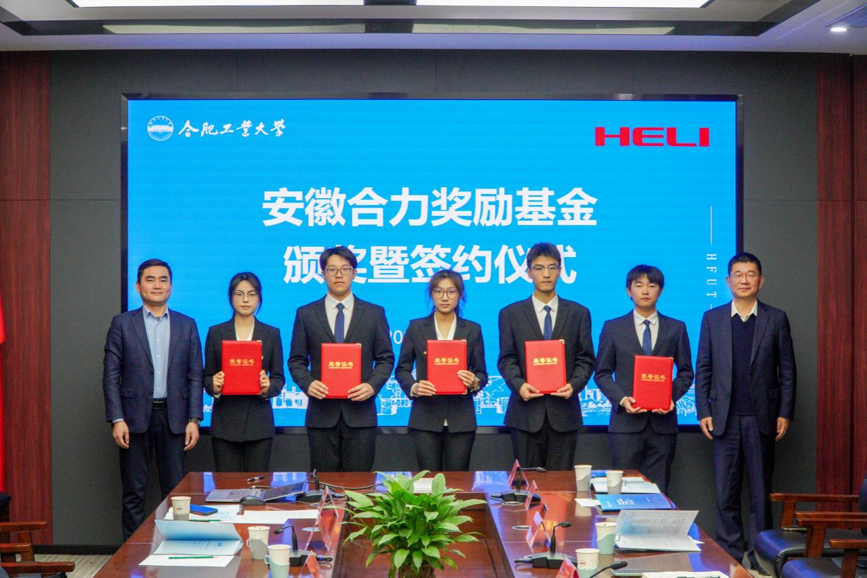 招生与就业处、校团委、发展联络处(校友总会办公室)、材料学院负责人及安徽合力奖学金、安徽合力创新创业基金等获奖学生代表参加活动。