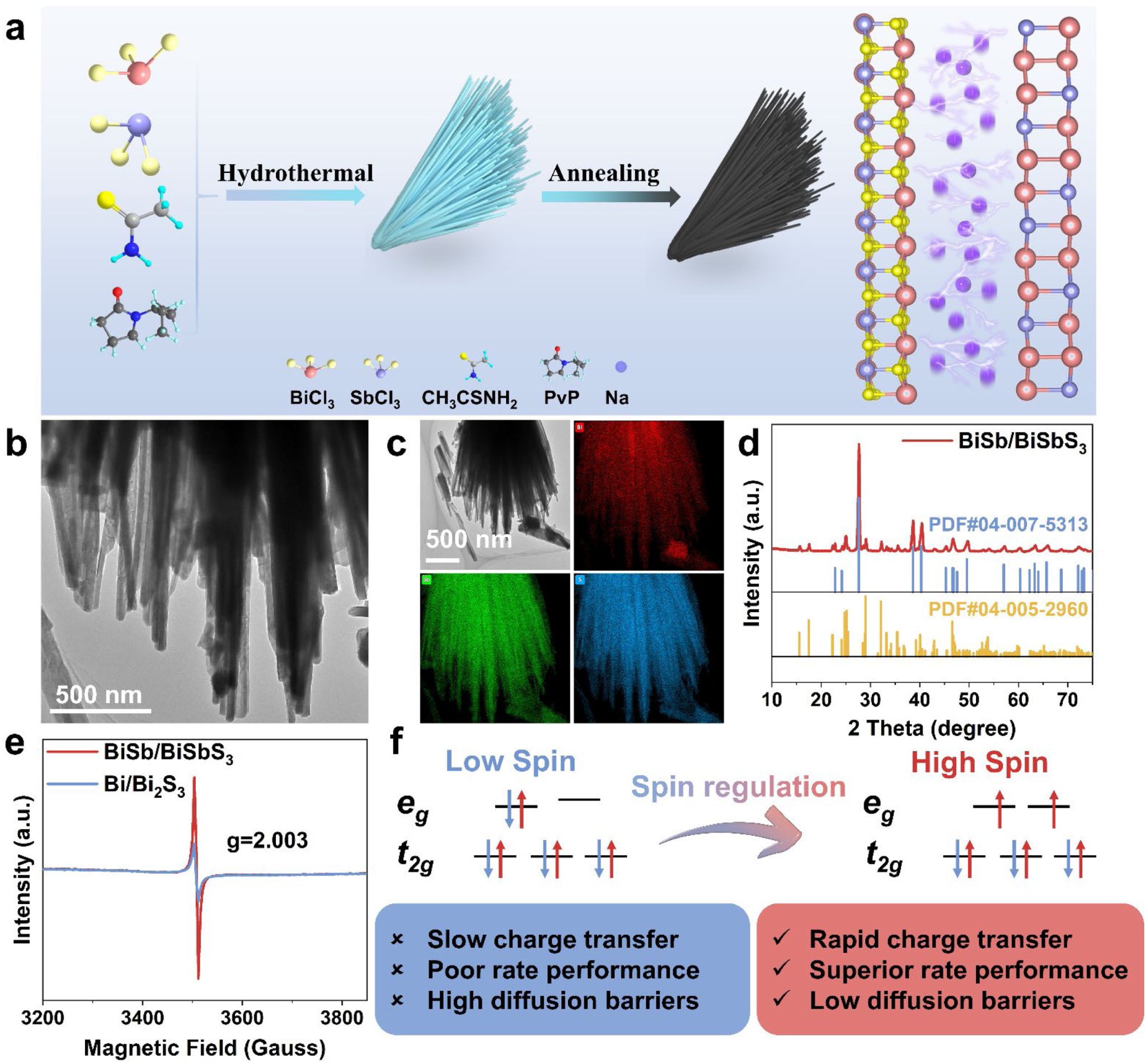 图1. BiSb/BiSbS3异质结材料的合成与表征